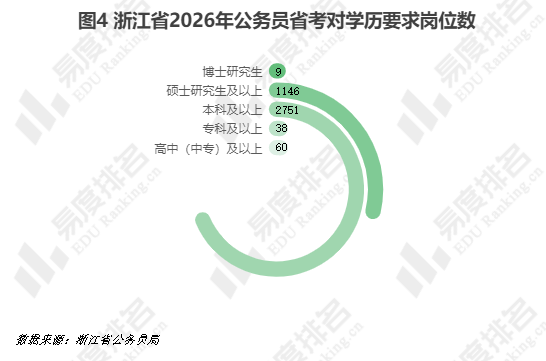 浙江省2026年省考公务员招录,本科毕业生是绝对的主力,从统计数据来看,70%以上的招考岗位本科生都可以报考。28.85%的岗位要求研究生学历报考,其中有9个岗位要求学历为博士研究生。