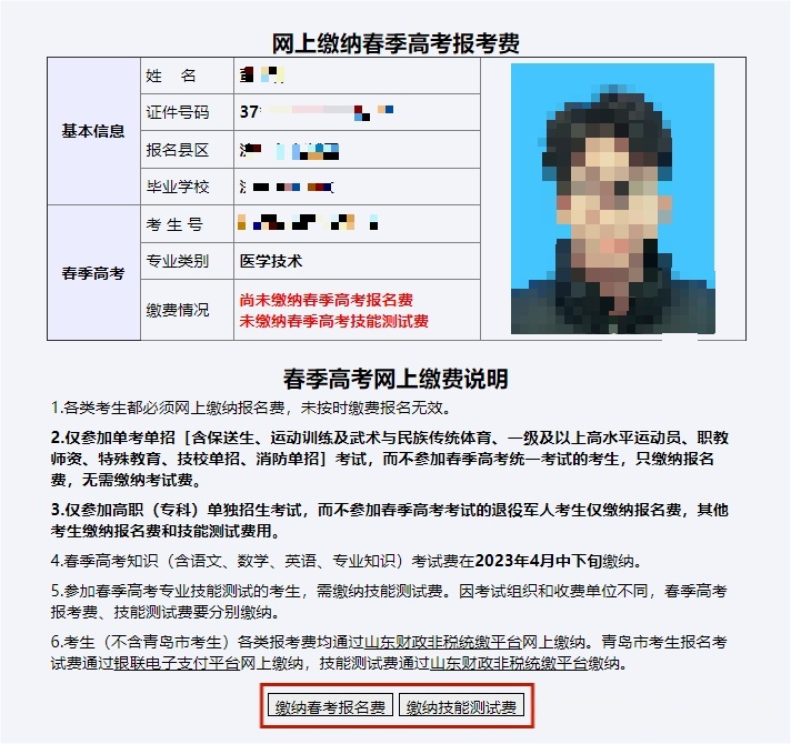 3.因考试组织和收费单位不同,夏季高考报考费、艺术类专业统一考试费、体育类专业测试费要分别缴纳。