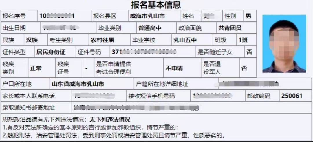 2、若有错误,请及时到报名县(市、区)招生考试机构申请修改。