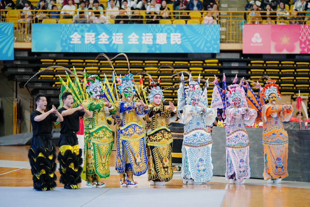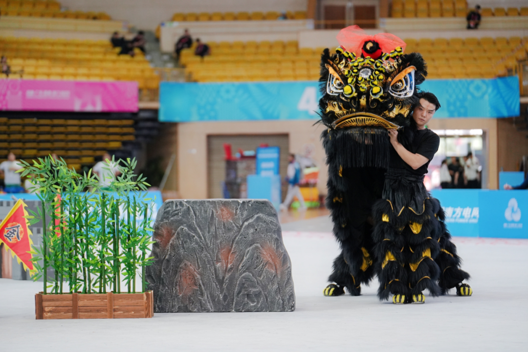 赛场上,我校龙狮队以河南豫剧文化为特色,深度发掘岳飞“精忠报国”文化元素,融合南狮传统文化精髓,创新融入岳飞《满江红》朗诵片段与“正义必胜、和平必胜、人民必胜”的时代强音。高难度的竞技动作与流畅的艺术表现相得益彰,既展现了南狮文化的独特魅力,又彰显了中原文化的深厚底蕴,赢得裁判与现场观众的一致认可,充分展现出河南青年运动员卓越的竞技实力与奋发向上的精神风貌。