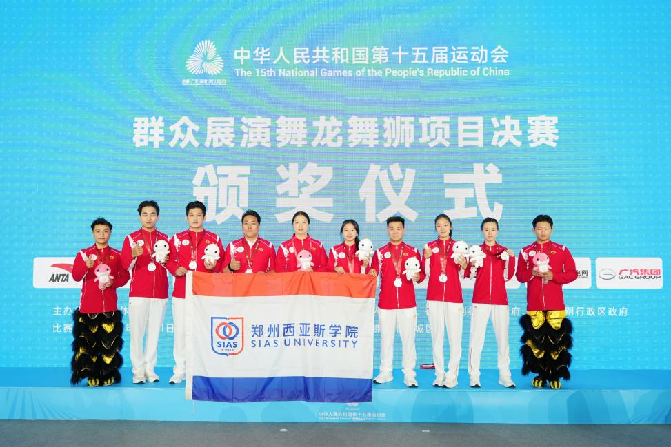 11月13日下午,第十五届运动会南狮传统项目决赛在广东佛山落幕。我校龙狮队凭借精湛技艺、鲜明中原文化风格及融合创新的表演,斩获全国第三名,为河南省代表团添得一枚宝贵银牌,成为本届全运会舞龙舞狮项目的一大亮点。