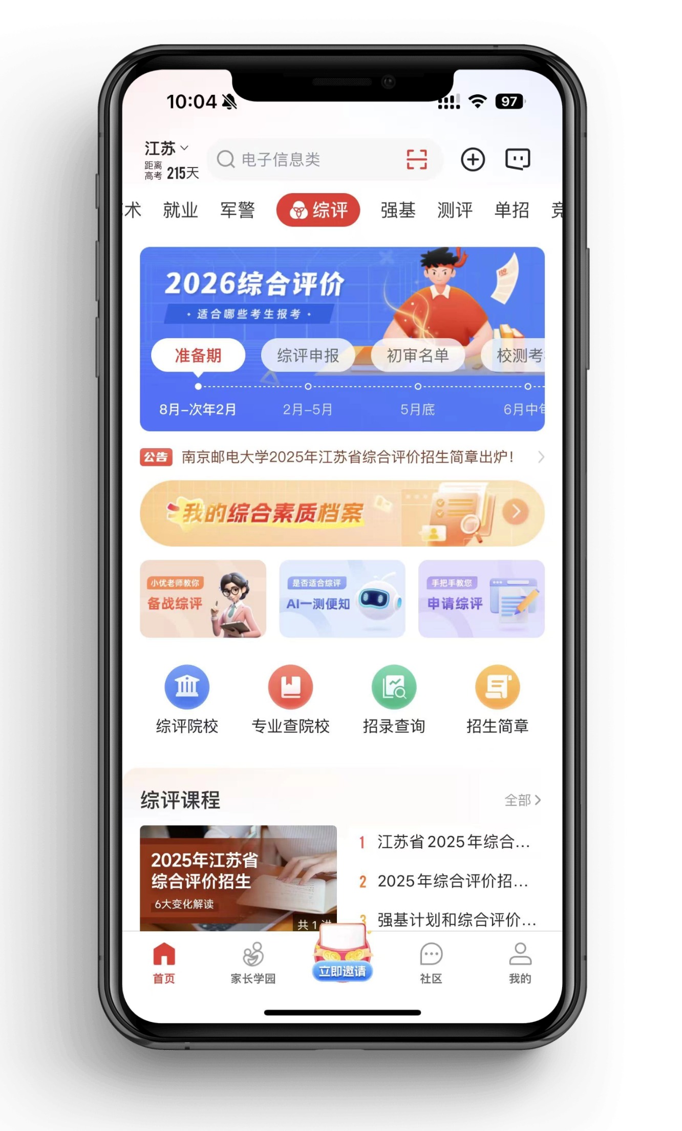 想要全面深入地了解更多关于综合评价招生的详细信息吗?那就赶快使用优志愿APP中的【综评】功能板块吧,在这里,你可以轻松获取更多专业、精准的综合评价相关内容!