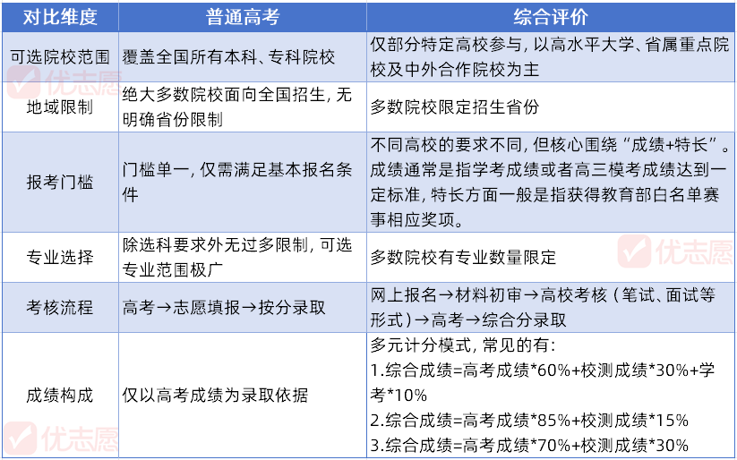 综合评价与普通高考的核心差异
