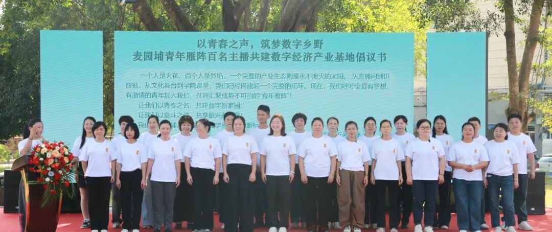 仪式上还设置了麦园埔村乡土英才承诺书宣读、“青年雁阵”主播倡议、项目蓝图展示等环节,全面展现了三方合力推动乡村振兴的决心与路径,彰显了新时代青年运用数字工具赋能乡村的激情与担当。