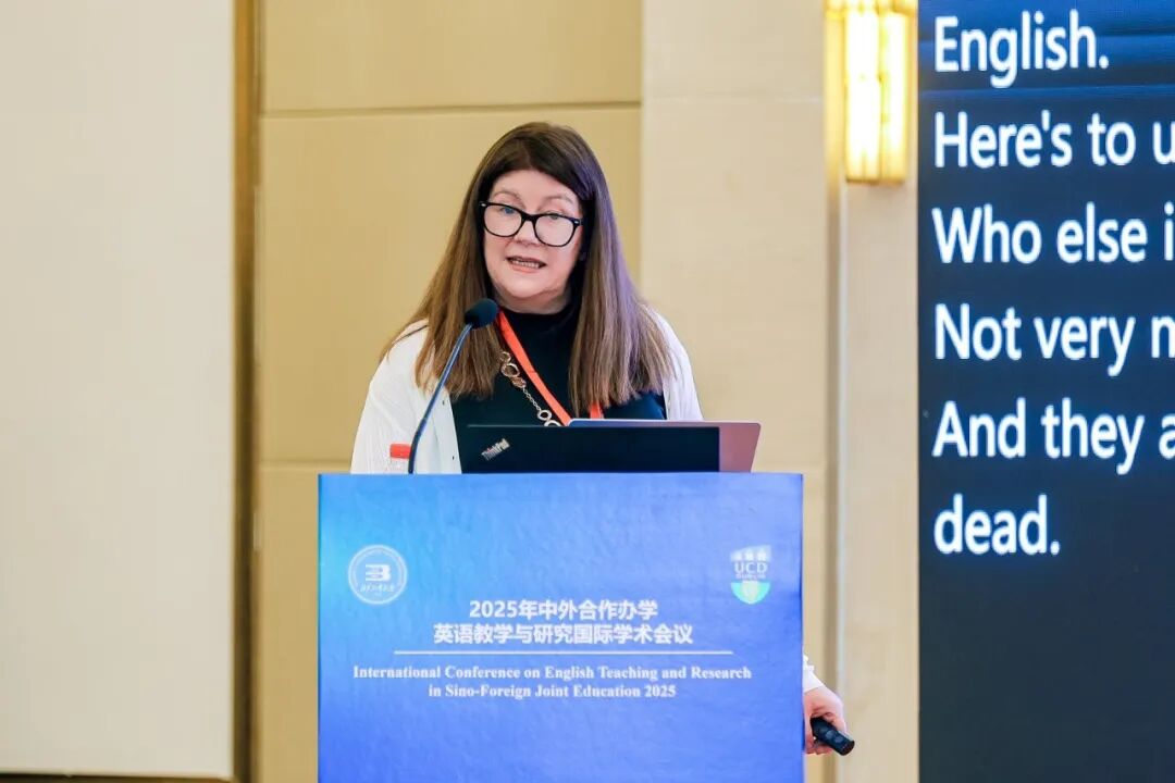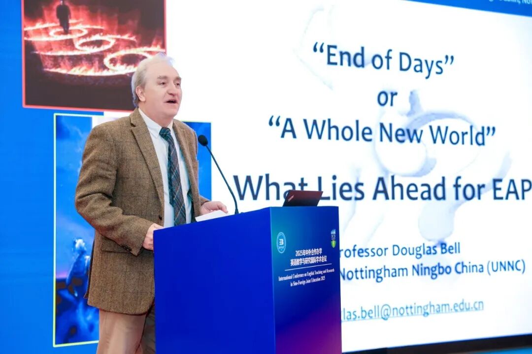 大会主旨报告环节由爱尔兰国立都柏林大学英语与全球语言中心负责人Anna Nunan主持,6位专家学者进行主旨分享。其中,宁波诺丁汉大学Douglas Bell教授以“‘末日降临’还是‘全新世界’:学术英语将面临怎样的未来”为题,深刻剖析技术革新时代学术英语面临的挑战与机遇;电子科技大学邸爱英教授、格拉斯哥学院英语课程质量负责人Jennifer Macdougall以“中英合作办学英语师资队伍建设——基于话语与参与式空间的学术英语教师专业发展”为题,分享师资建设创新经验;上海纽约大学梁建松教授以“以目标为导向的课程设计:基于逆向设计的EAP课程内容与体验式学习创新”为主题,分享了基于逆向设计的EAP课程与体验式学习创新模式;北京—都柏林国际学院吴文英教授、爱尔兰国立都柏林大学Alex Runchman先生以“中外合作办学英语教学新范式:学术英语、合作与社群的作用”为题,分享学院英语教学经验成果。