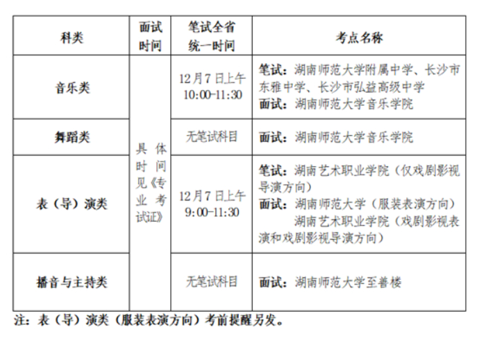 3.音乐类、舞蹈类每天安排五个考试单元面试,表(导)演、