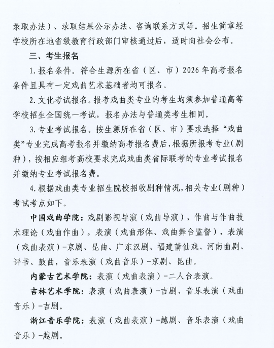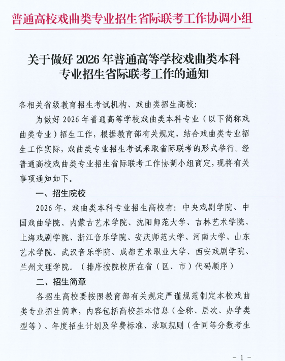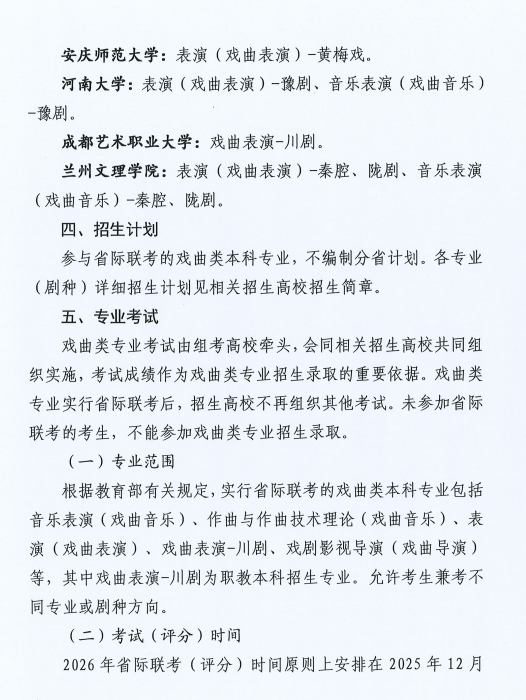 更多内容:关于做好2026年普通高等学校戏曲类本科专业招生省际联考工作的通知(点击查看)