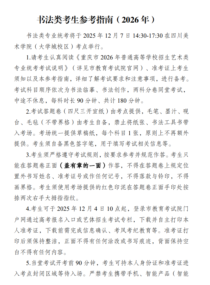 重庆:书法类考生参考指南(2026年)
