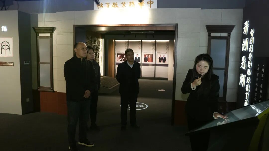 本次交流包含实地参观与专题座谈两大环节:文广传媒集团代表首先走访学院各专业实训室及中华职业教育社社史馆。随后,双方聚焦研学项目展开集中研讨。