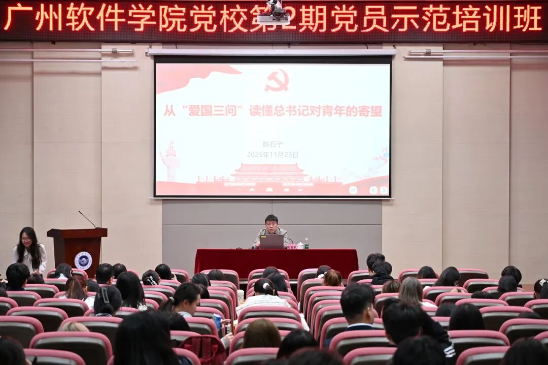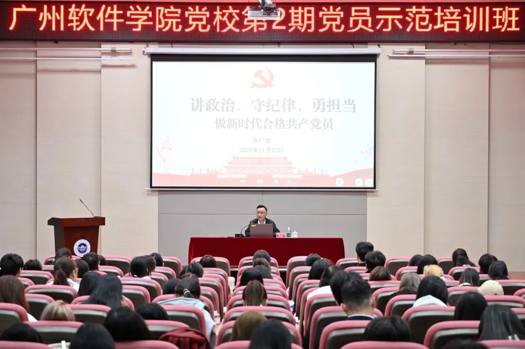 11月22日上午,广州软件学院党校第2期党员示范培训班于广州校区礼堂一厅举行开班仪式。学校党委书记兼督导专员、学校党校校长刘友坤,党委组织部部长马波及208名参训学员参加了仪式。本期培训面向2025级全体专升本党员,通过专题讲座、现场教学、视频教学与个人自学相结合的方式,旨在全面提升党员队伍的政治素养、理论水平和先锋模范作用。培训课程涵盖党的创新理论、党章党规党纪、党的奋斗历程与使命担当等多个方面,并安排赴广东省博物馆开展现场教学,引导党员同志们在学思践悟中筑牢信仰之基、补足精神之钙、把稳思想之舵。