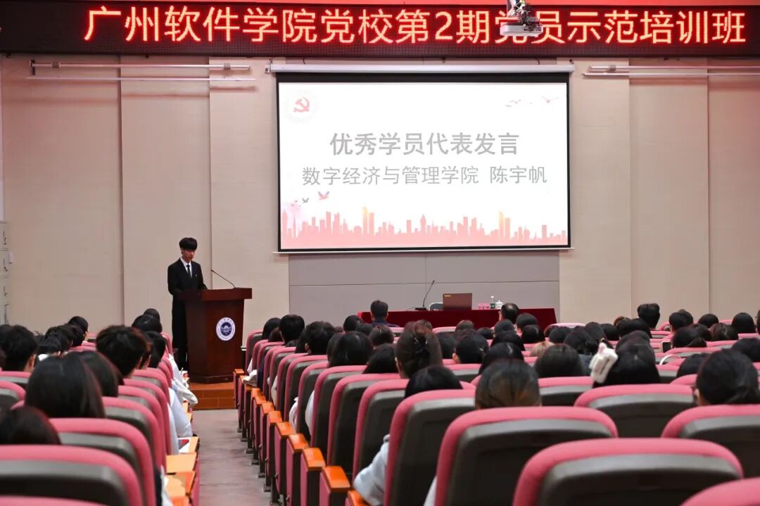 数字经济与管理学院陈宇帆同学作为本期培训班代表学员发言。他结合自身从入党初心到实践担当的成长经历,分享了在思想淬炼、学业实践、志愿服务等方面的体会与收获,展现了作为一名学生党员坚定的理想信念和扎实的行动力。他代表全体学员郑重表态,将做到“以学铸魂、以严律己、以干践行、以行示范”,珍惜培训机会,严守纪律,锤炼本领,发挥先锋模范作用,在今后的学习与实践中,真正做到学思践悟、知行合一,在青春的赛道上奋力奔跑,展现新时代学生党员的担当与风采。