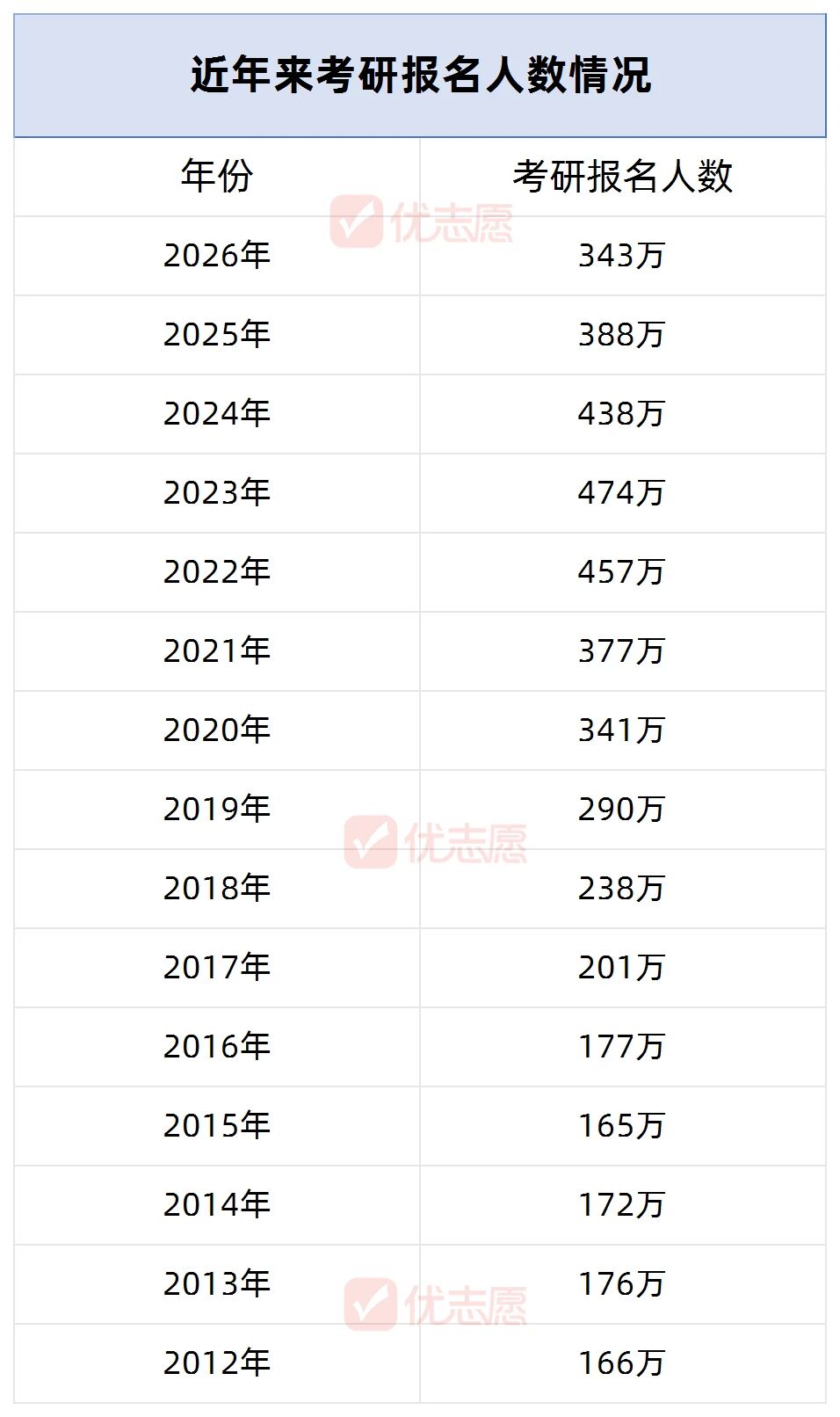 报考人数的三连降,让不少人产生疑问:2026 年考研上岸难度是否会随之降低?而对于正处于升学规划关键期的高考生来说,考研是否仍需纳入未来的升学路径考量?考研的价值是否随着报名人数下降而减弱?下面就跟优志愿一起,深入解读这些核心问题。