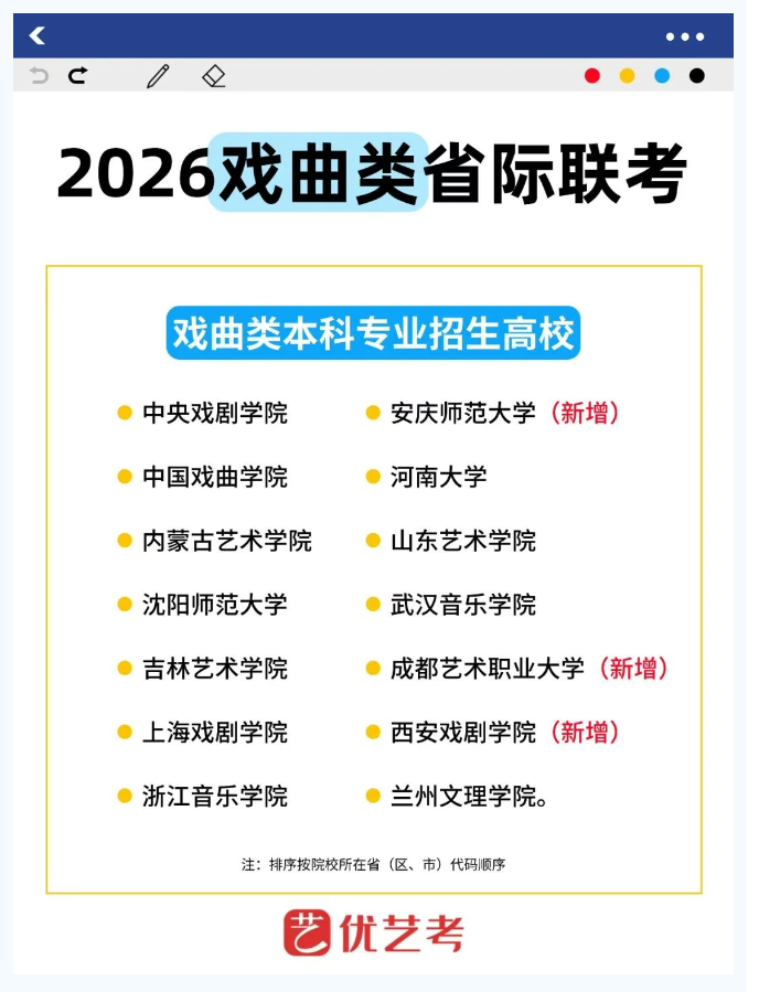 近期,各省教育考试院公布了《关于做好2026年普通高等学校戏曲类本科专业招生省际联考工作的通知》。2026年戏曲类省际联考新增3所院校。