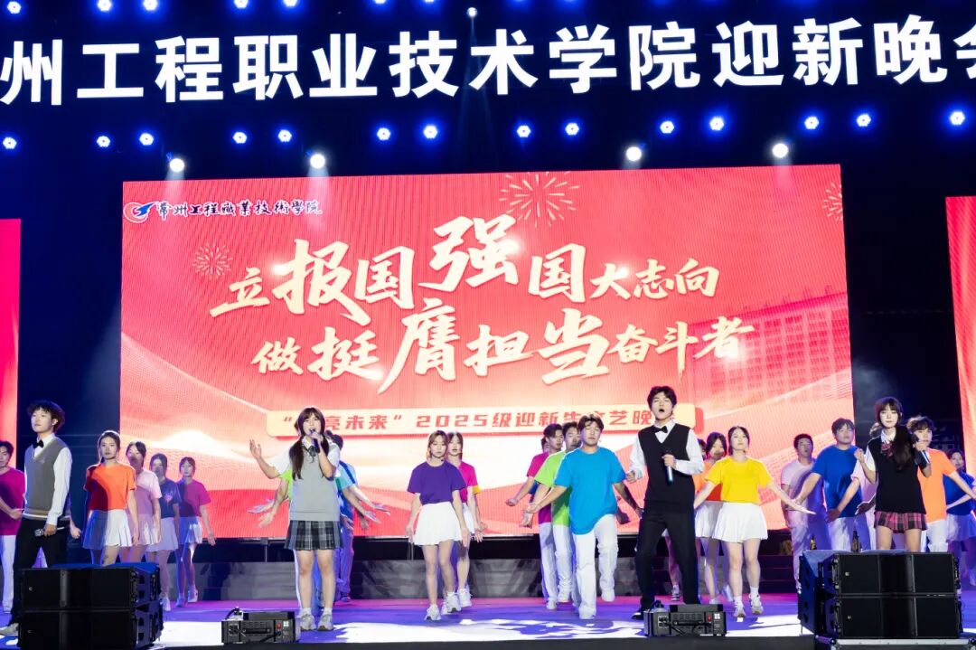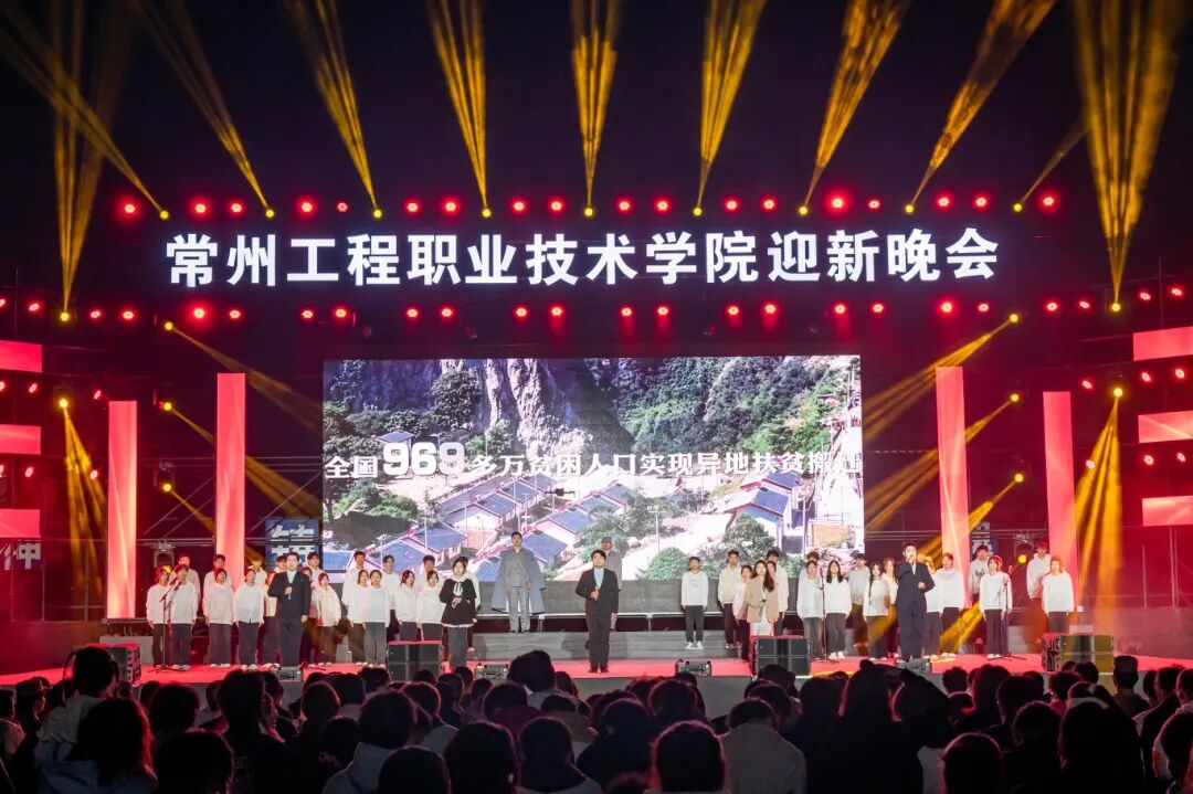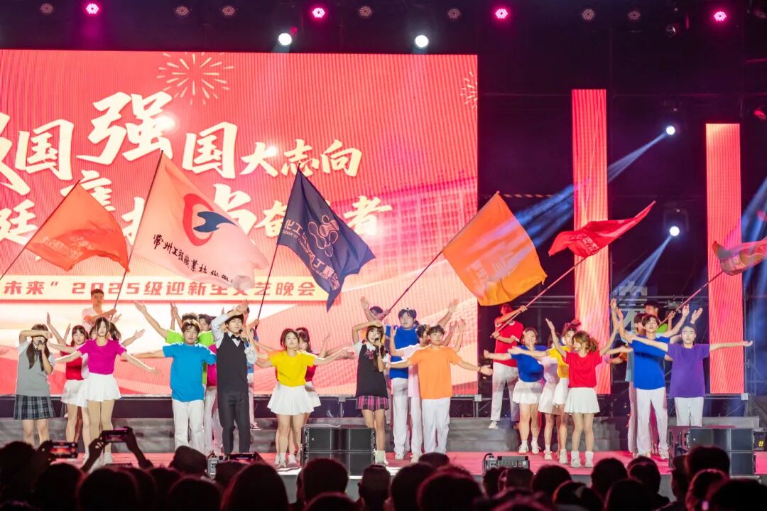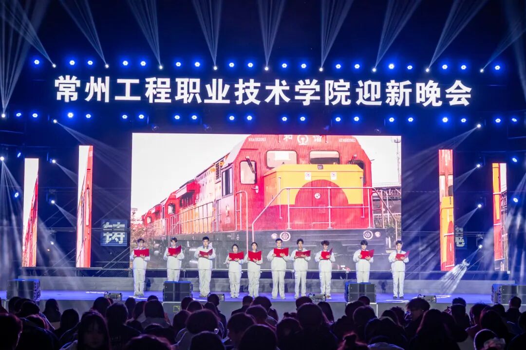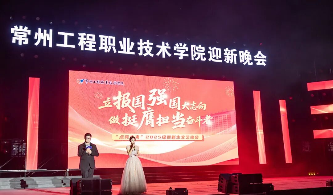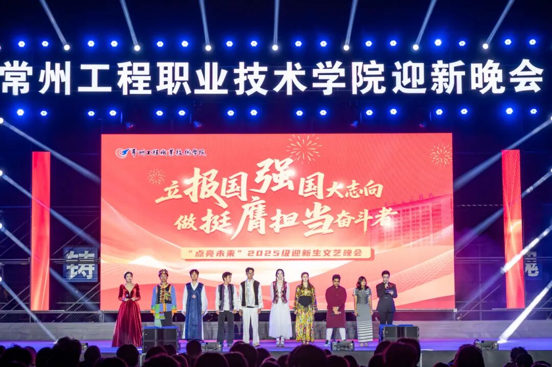 10月27日晚,“点亮未来”2025年迎新生文艺晚会在学校田径场隆重举行。学校党委领导杨劲松、基国林、周勇、张雪华、黄一波、徐黎明、蒋小燕出席晚会,学校各职能部门、二级学院教职工与全体2025级新生共同观看了这场青春盛宴。校企合作单位中车戚墅堰机车有限公司、医校合作单位联勤保障部队第九〇四医院特邀参与演出。