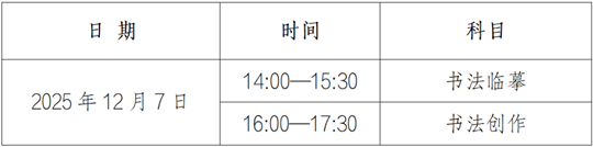 3.开考15分钟后,考生不得进入考点参加相应科目考试。书法临摹考试结束前15分钟内方可交卷,交卷后不允许出场,不得接触手机等违规物品。书法创作考试结束前30分钟内方可交卷出场,交卷出场后不得再进场续考,也不准在考场附近逗留或交谈。