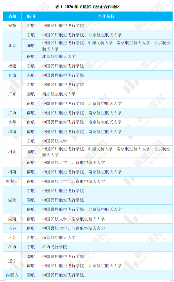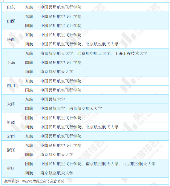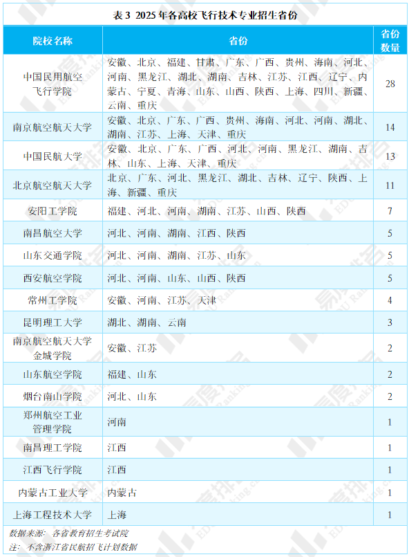 根据各省考试院2025年公布的招飞情况,整理出各院校的招生省份。民航招飞主要以