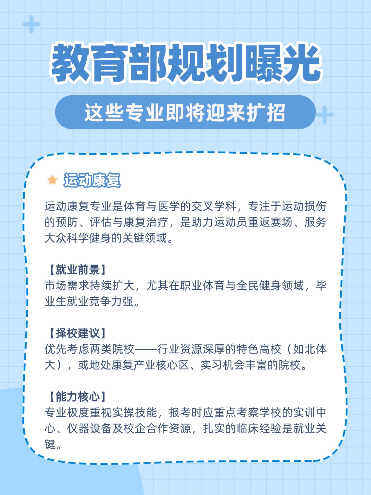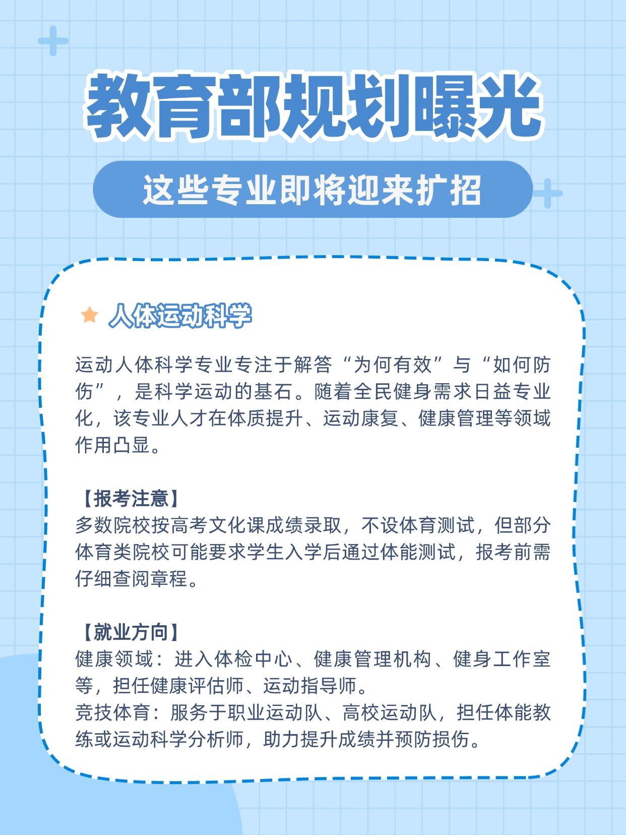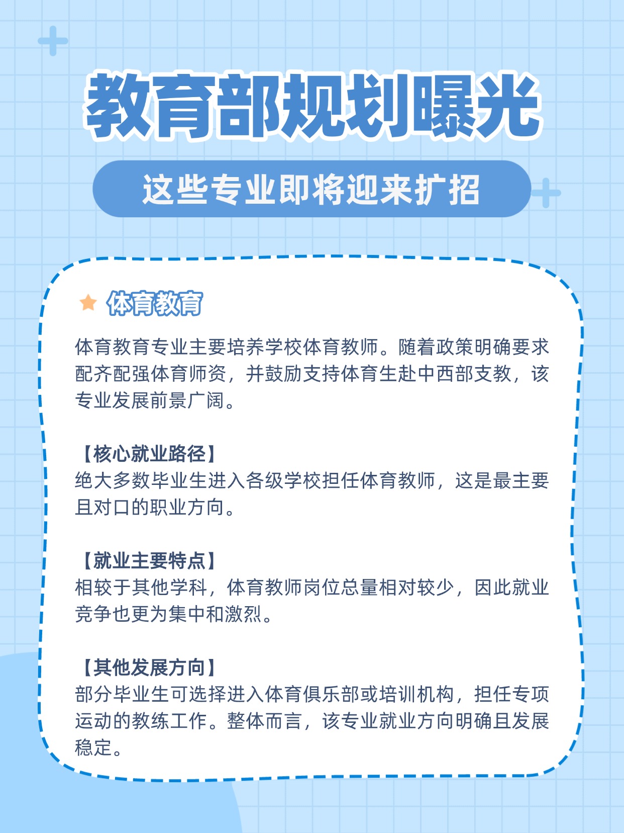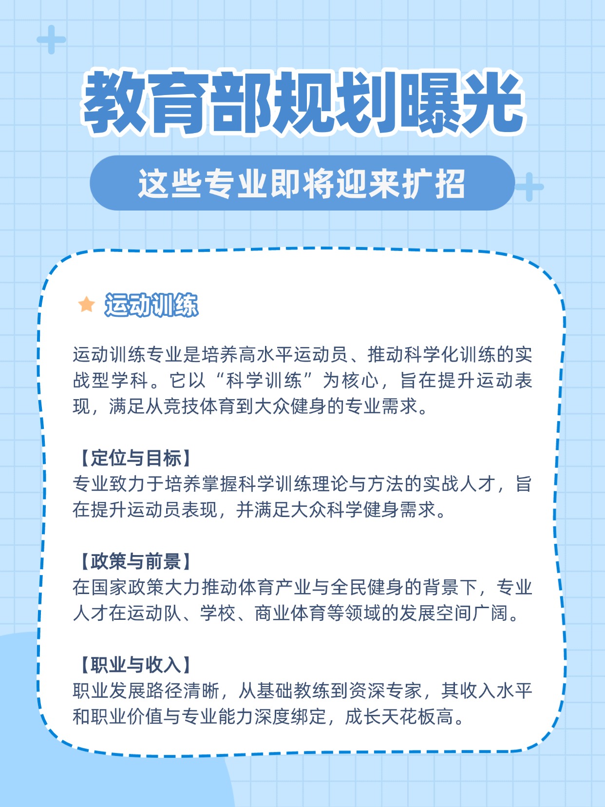 近日,教育部等五部门联合印发《关于实施学生体质强健计划的意见》,为体育教育发展指明方向。这对体育生和想投身相关领域的学生无疑是重磅利好。哪些专业将迎来机会?快跟优志愿一起看看!