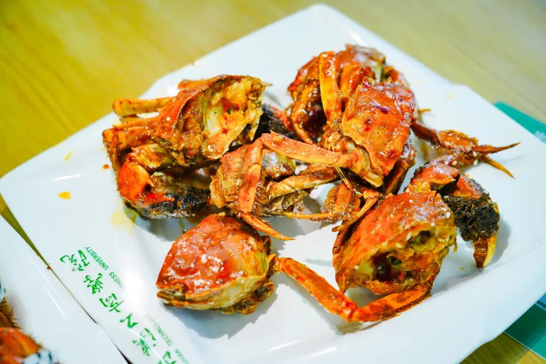 中午,这波美味刚一上线,就吸引了大批师生前来尝鲜。现场,学校新闻专业2023级学生涂圆和同学围坐一桌,一边熟练地拆蟹,一边兴奋地分享道,“清蒸的不仅个头大,掰开一看,蟹肉和蟹膏都满满当当,咸香中裹着鲜甜,而且处理得很干净。我个人更喜欢香辣蟹,它已经对半切开了,吃起来很方便,一嗦肉就全出来了。辣得恰到好处,实惠又美味,能在食堂吃到这么新鲜肥美的螃蟹,幸福感爆棚。”