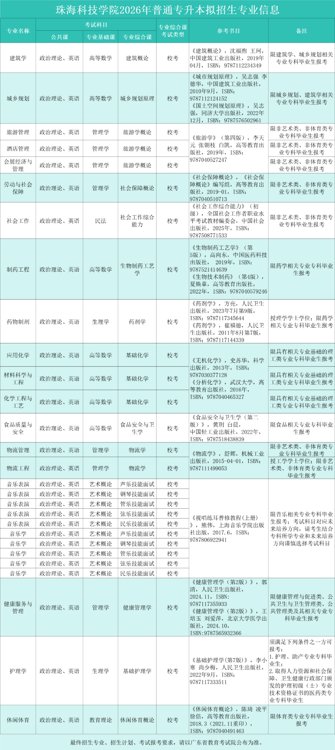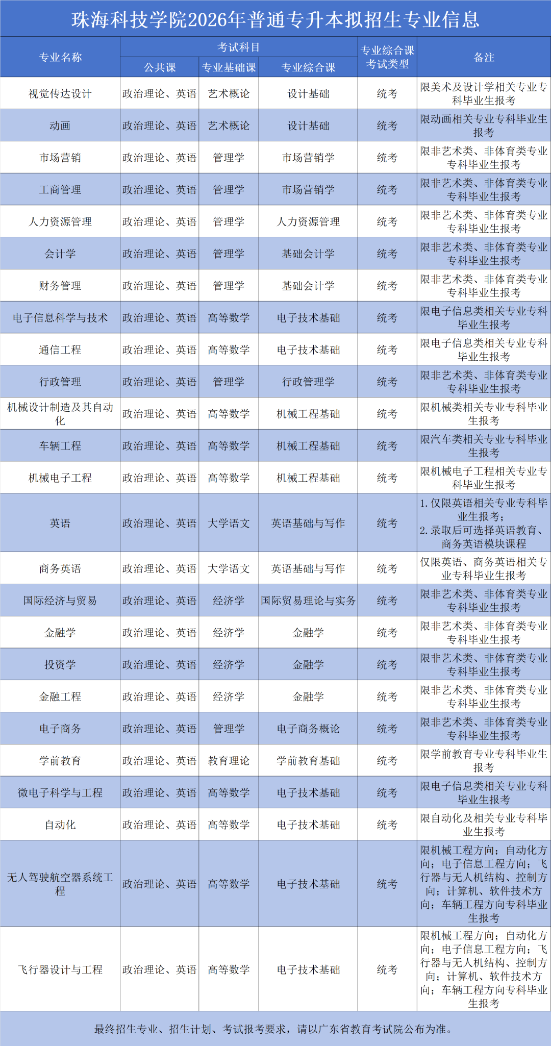 温馨提示:珠海科技学院2026年普通高等学校专升本免文化课考试招收退役大学生士兵招生简章请密切留意珠海科技学院招生网消息。