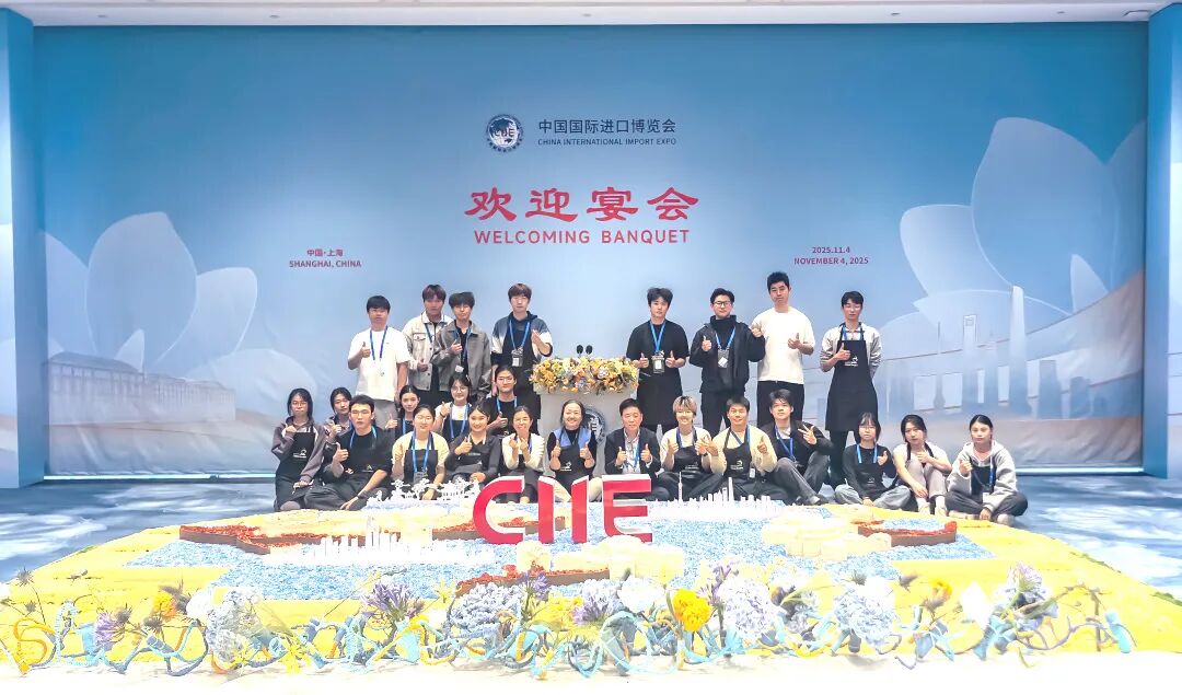 近日,在朱迎迎大师和项一鸣大师的带领下,上海建设管理职业技术学院园林技术与艺术学院教师潘沈涵、蒋孟良、陆多佳,学生张婧熙、沈敬轩、胡佳慧、忻思颖、马渊哲携手上海农林职业技术学院、上海城建职业学院的师生团队,圆满完成了第八届进博会欢迎宴会的花艺布置工作,以精湛技艺展现了职业教育的实践成果与专业魅力。