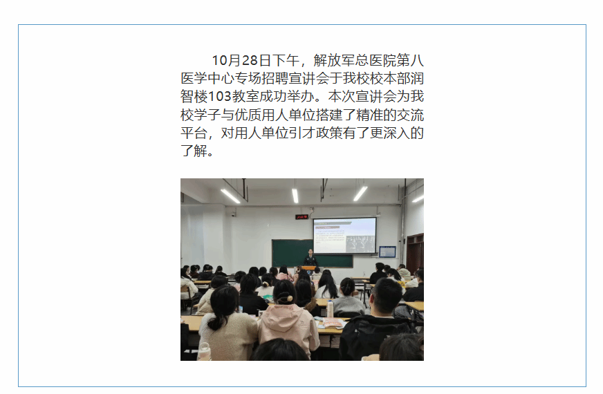 我校举办解放军总医院第八医学中心专场招聘宣讲会