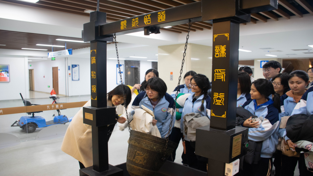 中华优秀传统文化源远流长,博大精深。在宽敞明亮的展厅内致远学子目光聚焦于一个奇特的古老装置——欹器。它空时倾斜,满时倾覆,唯有不空不满时方能保持端正。这“空则欹,中则正,满则覆”的巧妙设计,瞬间将“满招损,谦受益”的古训化为一场生动的实践。这不仅仅是一次知识讲解,更是一次深刻的文化传承和品格教育,激励致远学子们将“戒骄戒躁,谦虚谨慎”内化为一种人生态度和学习精神。