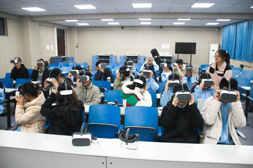 在学院的教室,我们体验了 VR 新技术,亲身经历了“AI 时代科技赋能”。通过 VR,我们以第一视角踏入红色文化博物馆,深刻体会革命年代的艰辛、坚定、执着。红色文化与 VR 技术结合,给文化赋予时代内涵,增强了红色文化发展韧劲,提高了文化生命力。通过体验,我们进一步坚定了共产主义理想信念。