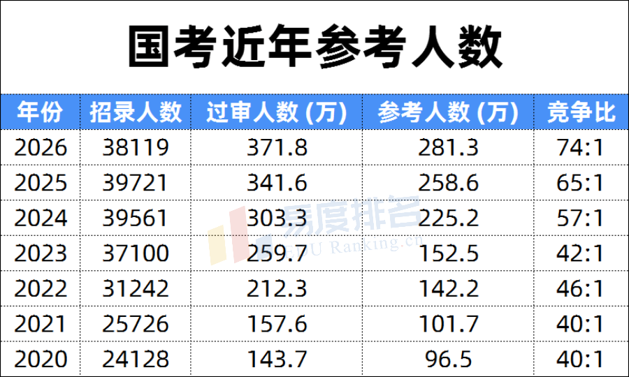竞争比从2020年40:1到2026年74:1,“上岸难度” 近乎翻倍!