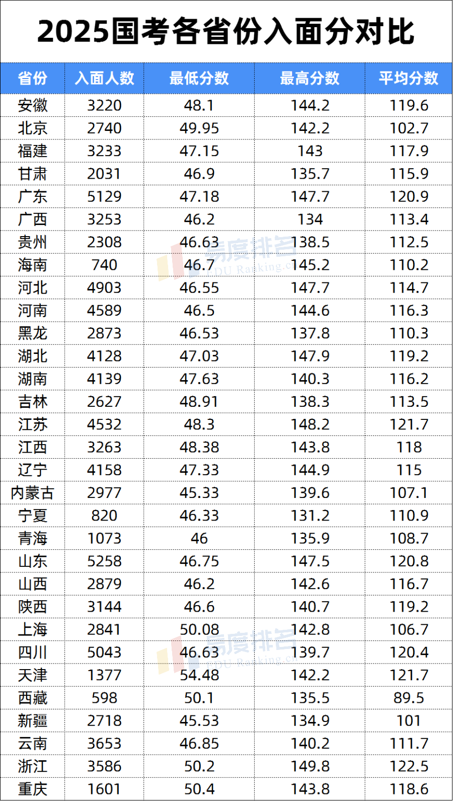 浙江、江苏、天津的平均进面分超过121分,其中浙江省最高分达到149.8分,与全国最高分持平。这不仅是考生实力的体现,更是经济发达地区公共职位附加价值的直接兑换——更好的发展平台、更优的公共服务资源以及潜在的区位红利。