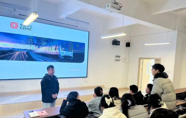 为深化产教融合、创新人才培养模式,11月19日,我校轨道交通学院特邀“株洲工匠年度人物”、中车株洲电力机车有限公司资深专家周峰来校为我校学生带来《城轨车辆全自动驾驶技术的应用》专题讲座。本次活动由教学科研处李荣郴处长主持。现场座无虚席,气氛热烈。