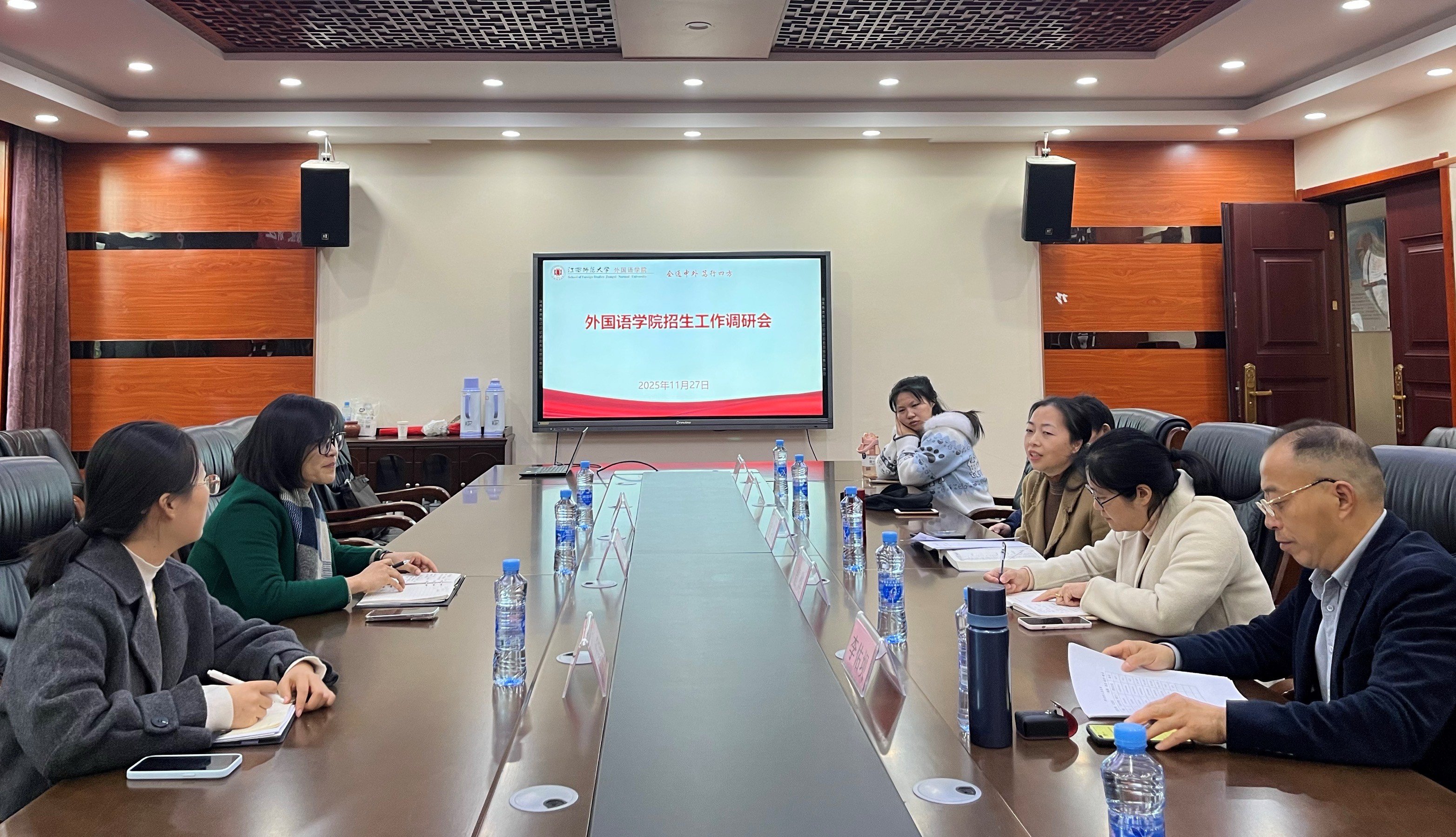 本次调研走访了城建、外国语、经管、政法和人工智能等学院,覆盖20多个专业。调研过程中,各学院对2026年招生专业组的设置和招生宣传等工作,提出了意见建议。招生办围绕学院如何优化专业设置、加强日常与各大中学对接,提升招生宣传工作的效力等方面,介绍了全国各大师范类兄弟院校的经验与做法,也就各学院招生工作中面临的挑战与困难进行交流。