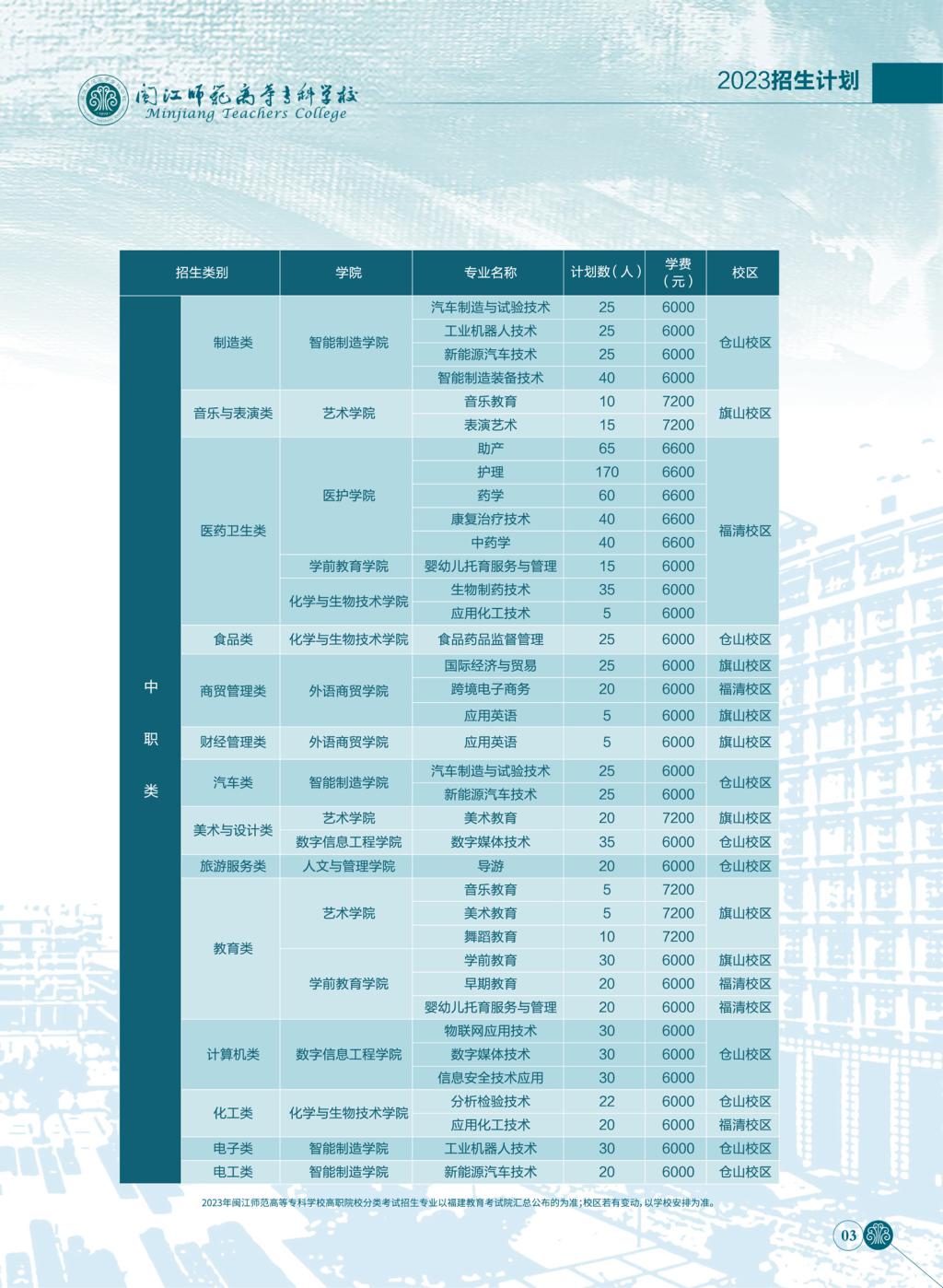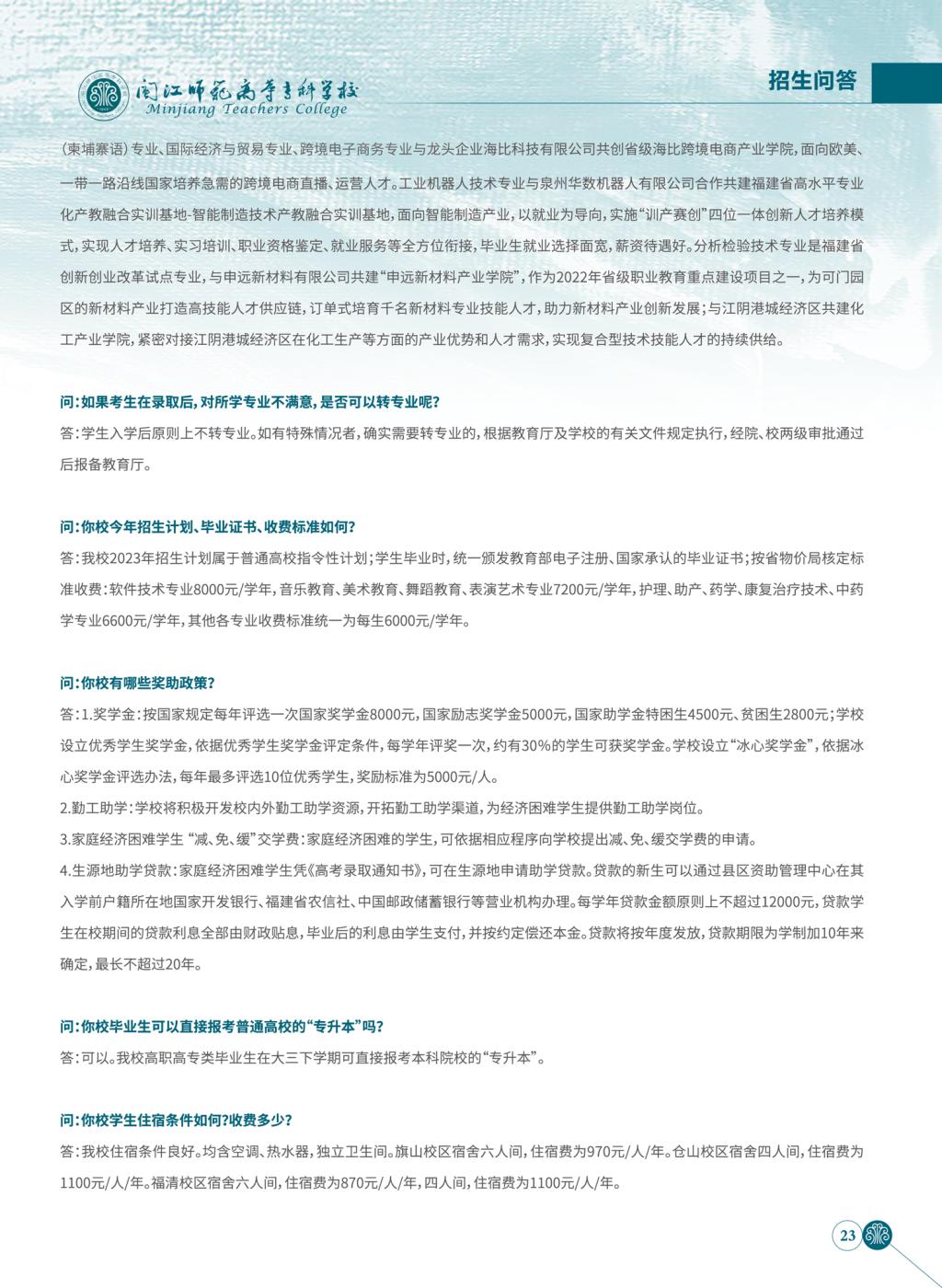 2023年闽江师范高等专科学校高职院校分类考试招生简章