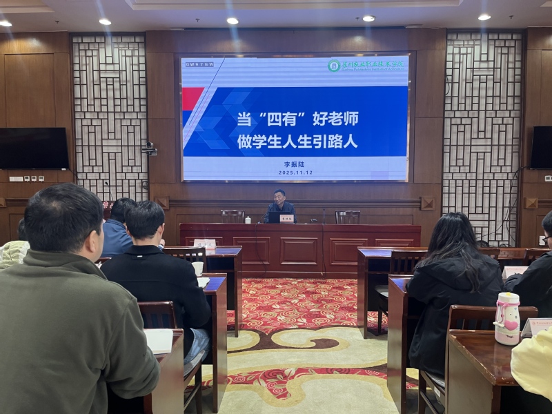 为拓宽新教师育人视野,学校特邀江苏省高职专业认证委员会副主任委员、秘书长、苏州农业职业技术学院原党委书记李振陆作《当“四有”好老师,做学生人生引路人》专题分享。他从“有理想信念、有道德情操、有扎实学识、有仁爱之心”的核心要求出发,结合职业教育发展趋势,为新教师诠释了新时代“好老师”的内涵与担当。