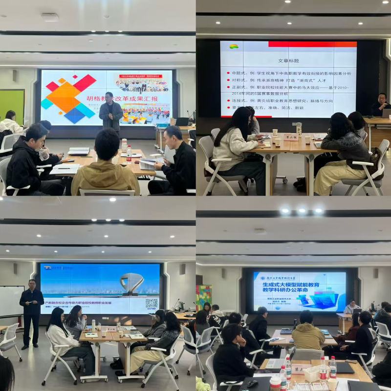 工作坊实操环节成为本次培训的“亮点模块”。该环节以“实践导向、团队协作、问题解决”为核心,让新教师在动手实践中提升技能。全国技术能手、江苏省五一劳动奖章获得者、我校机械与交通学院副教授程刚带领学员深入探究“胡格教学模式”,通过案例拆解、分组实操等方式,帮助新教师掌握互动式教学方法;南京工业职业技术大学图书馆馆长孟庆杰教授聚焦“人工智能赋能教学实践”,引导学员运用智能教学工具设计教学方案,感受技术与教育融合的魅力。此外,校外专家顾德仁《产教融合校企合作助力职业院校教师职业发展》、江苏理工学院孙健老师《职教教师教科研能力提升路径——以职教类论文写作与投稿为例》的专题分享,均为新教师的职业发展提供了实用指导。