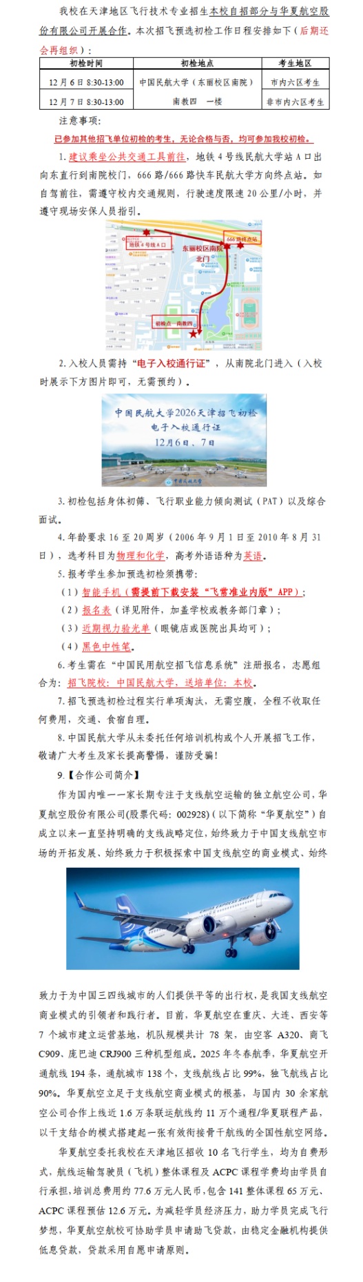 附件【※中国民航大学招飞预选初检报名表.pdf】(点击查看)