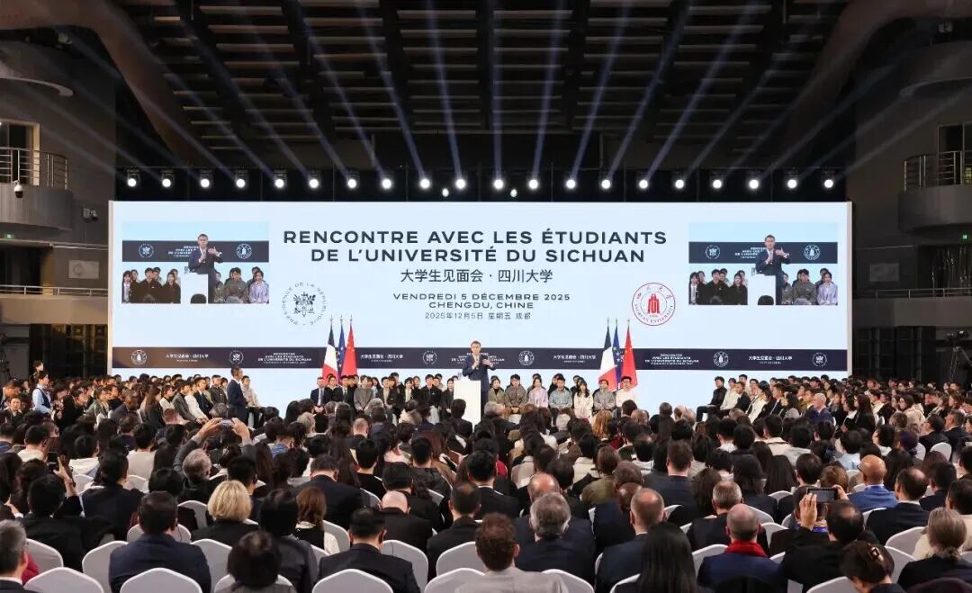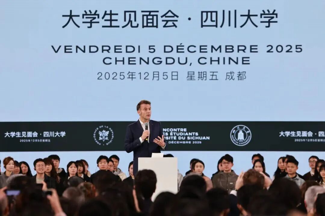 演讲结束后,校党委书记甘霖代表学校向马克龙赠送《四川大学博物馆藏品集萃》。丛书收录了始建于1914年的四川大学博物馆的代表性藏品,涵盖书画、瓷器、印章、货币、皮影、藏传佛教艺术等门类。这些文物生动展现了中国西南地区独特的历史与文化,彰显了中华优秀传统文化的底蕴与传承。