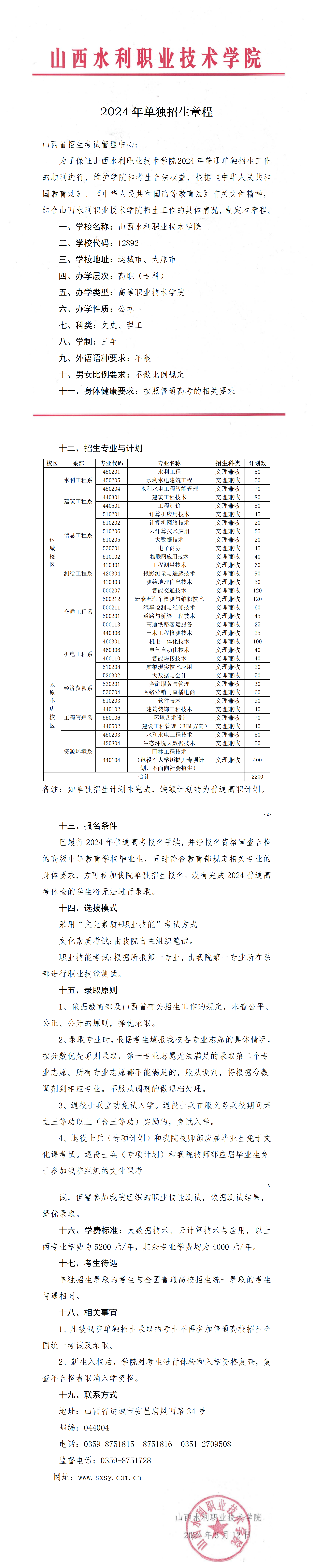 2024年单独招生章程