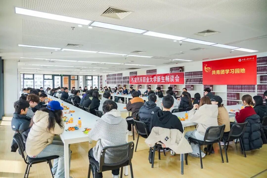 2025年12月4日15时,西安汽车职业大学在临潼校区图书馆共青团学习园地组织召开了2025级山西、延安地区新生座谈会。会议以“凝聚青春力量,畅聊大学新程,共赴未来”为主题。校长助理穆乾坤参加会议并讲话,就业办公室主任王兴国、副主任刘霞,智能制造学院副院长文刚、院长助理杨波、辅导员代辉,相关区域招生老师及70余名新生代表共同参会。会议由招生办副主任高利斌主持。