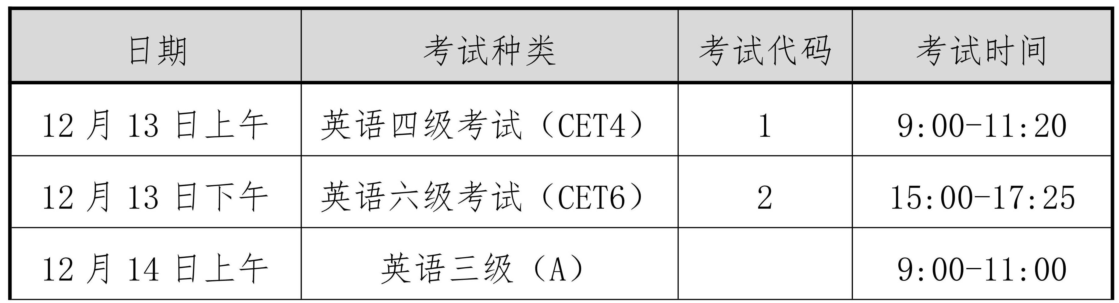 2025年下半年全国大学英语四、六级笔试(CET4、6)和高等学校英语应用能力考试(AB级)将分别于12月13日、12月14日举行。现就有关事项提示如下: