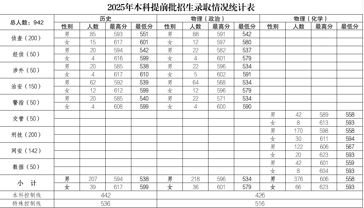 2025年各专业招生录取分数一览表