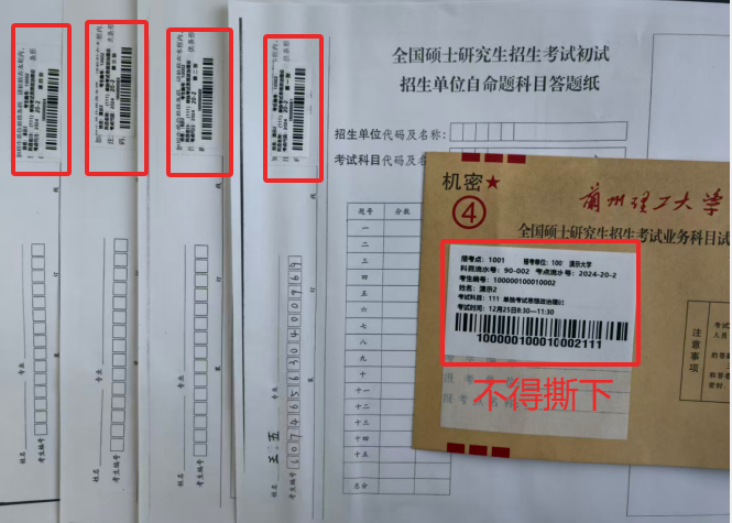 6.条形码确实无法粘贴时,可不粘贴,但务必在每张答题纸上完整填写姓名、专业及考生编号,由学校后期处理即可。