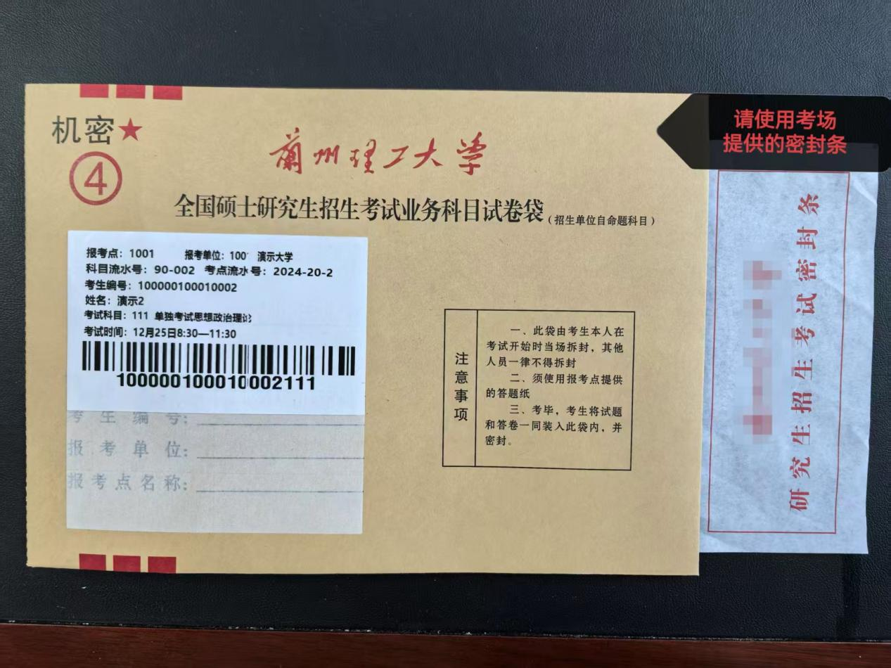 首先核对试题信封条形码处个人信息,包括考生编号、姓名、考试科目等。如信息不符,请勿拆封并立即向监考老师说明。确认无误后方可启封。
