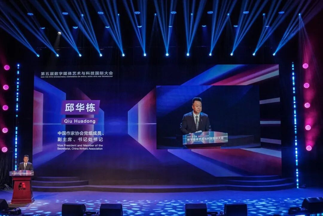 邱华栋在致辞中指出,数字媒体已从前沿交叉学科成长为驱动文化创新的核心引擎,人工智能已从被动工具演变为文艺创作的主动助手,为叙事创新与灵感具象化提供了全新可能,呼吁文艺工作者以深厚人文底蕴为科技注入灵魂,坚守人类文化的独特性与深刻性。