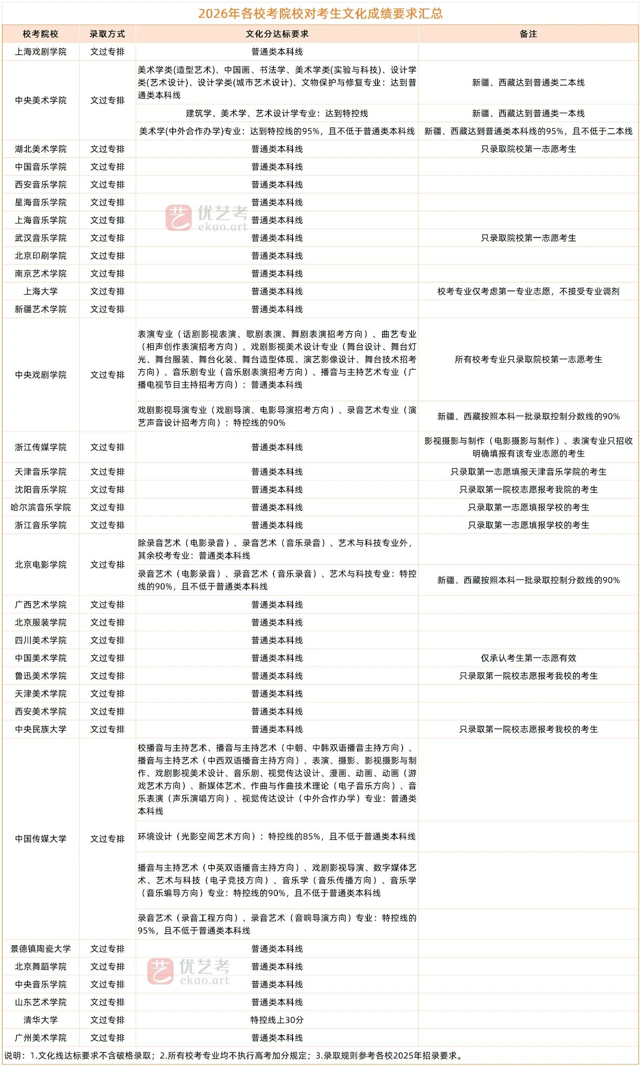 艺术类统考结束后,不少同学会犹豫到底要不要校考,也不清楚校考的要求高不高,尤其是文化课的要求自己能不能达标。优艺考整理了2026年校考院校对文化课的要求,快来看看自己都达标了吗。