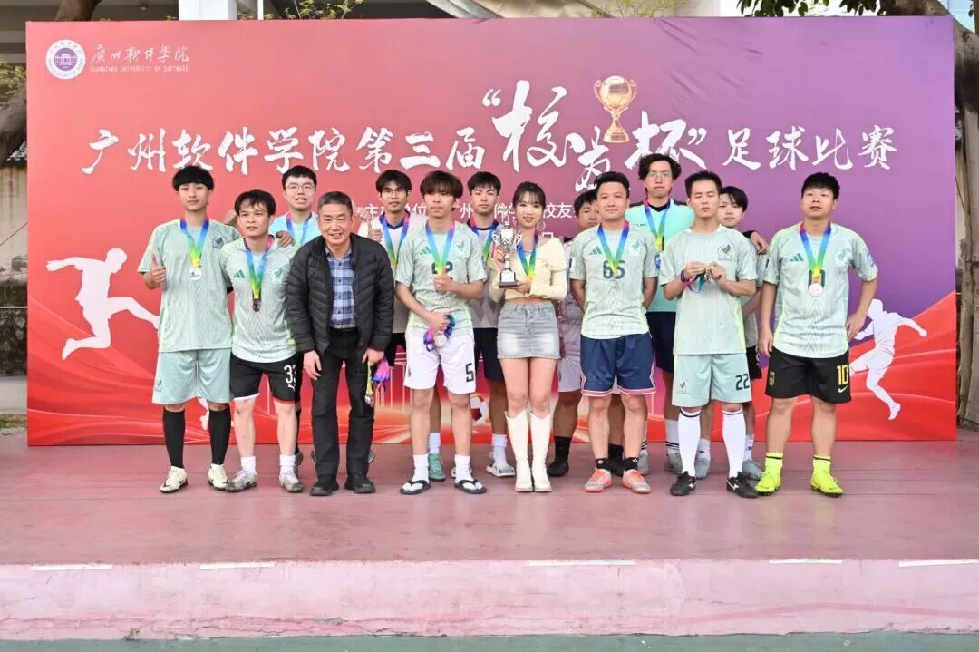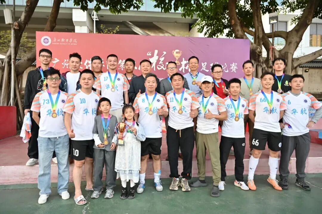 广州校区田径运动场上,第三届 “校友杯” 足球赛成为当天的热血亮点。比赛采用八人制赛制,全场40分钟。7个学院14支校友足球队同台竞技,球员们秉持“友谊第一、比赛第二”的宗旨,在赛场上奔跑传接、默契配合,每一次射门、每一次防守都展现着校友们的活力与风采。场外,亲友团与师生观众的呐喊助威声此起彼伏,将现场气氛推向一个又一个高潮。袁志副校长、相关部门及学院负责人到场观看比赛并为获奖代表颁奖。