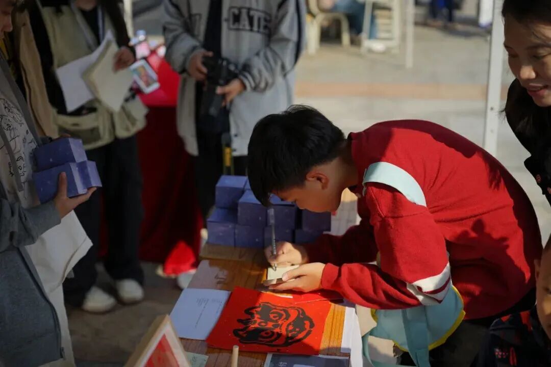 在校园各处,校团委、学校校友会、各学院校友分会师生准备了丰富多彩的游园打卡活动,让返校校友及随行人员沉浸式感受广软文化魅力与互动乐趣。在翠园 2 号楼、图书馆前广场、明德广场等活动区域,书法协会的 “共赴木棉节,迎春送对联”、汉服协会的 “棉絮飞歌,雅韵投壶”、棋类协会的 “棋乐融融,花落谁家”等特色活动依次开展。英歌协会的《潮韵英歌》刚劲奔放,艺术团醒狮队的 “棉风狮韵” 尽显非遗风采,国文馆的“秉风吟木棉,执笔叙流年”让校友们在笔墨间抒发情思。此外,亲子投球接力、手工黏土制作等亲子互动项目,让校友们带着家人共享校园时光,定格温馨瞬间。独特的互动形式不仅增强了活动趣味性,更让每一份文创礼品都成为承载校园记忆的珍贵信物。学校饭堂专门开设的校友专窗,让熟悉的 “校园老味道” 唤起校友们的青春回忆,在味蕾的满足中感受母校的贴心关怀。总务处、保卫处、江门校区相关部门管理与服务人员一早到岗,全天为活动护航,尽可能给返校校友提供一个整洁、安全的校园环境。