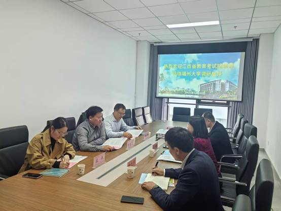 2025年12月10日下午,江西省教育考试院党委书记刘彪文一行到福州大学进行调研交流。交流座谈会在福州大学晋江楼三楼会议室举行,双方围绕招生工作安排、生源质量提升及招生宣传联动等议题展开了务实而深入的讨论。
