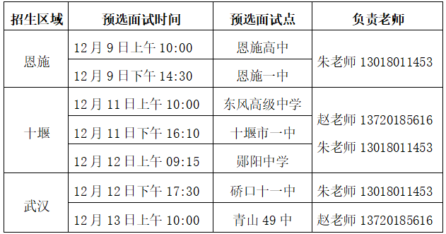 (四)十堰市预选面试具体时间、地点请联系相关负责老师。
