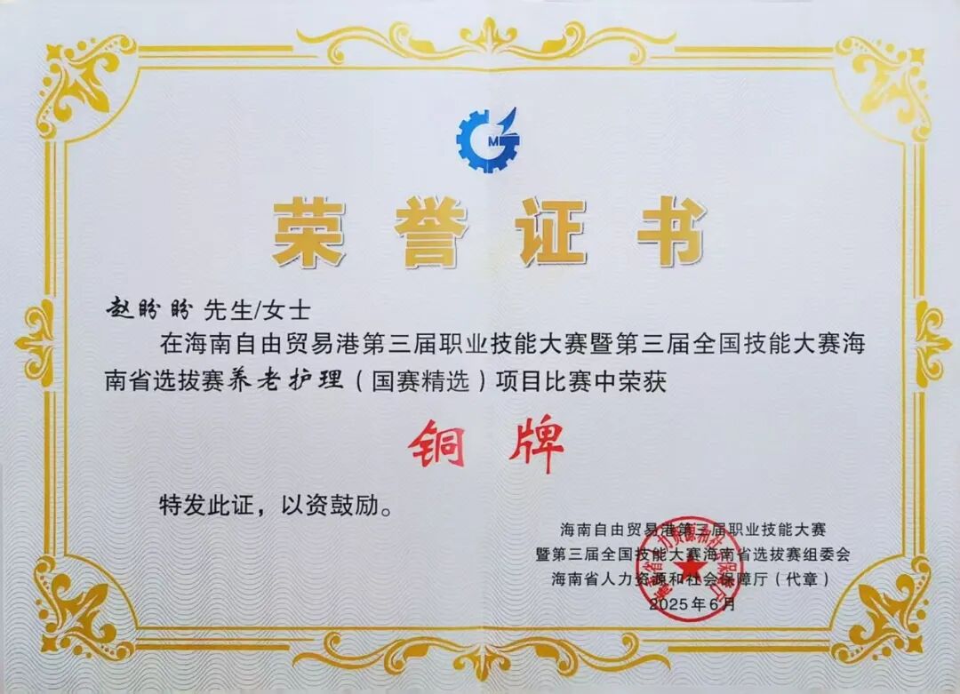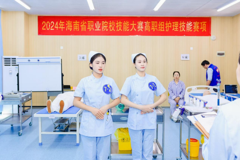 护理专业还创新打造“三维能力”特色培养模式,将职业素养、专业技能、综合能力三大核心要素深度融入教学各环节。在职业素养培育维度,专业将医德教育嵌入日常教学,将“诚信服务、精益求精”的职业精神厚植于学生成长的每一个阶段;在专业技能锤炼维度,全面推行“岗课赛证”一体化融合教学,以护士执业资格证、健康管理师等权威职业证书为核心导向,夯实静脉输液、急救护理等岗位核心技能,大幅提升人才培养与行业岗位需求的匹配精度;在综合能力提升维度,专业针对性开展英语应用能力强化训练与自贸港政策解读教学,既培养学生服务外籍患者、适应高端医疗场景的综合能力,又全方位增强其对自贸港医疗服务场景适配性,实现综合能力培养与区域产业需求的精准对接。近年来,护理专业多名学生在省级护理技能竞赛中屡创佳绩,人才培养质量得到了行业与赛场的双重检验。