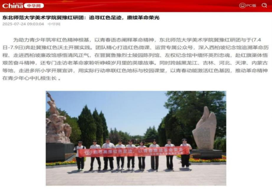 同时开展公益支教,将非遗艺术带进校园,结合各省当地的红色文旅资源利用美术学科特性制作美术微课并带到支教学校形成矩阵化传播。其中12人前往5个省份参与公益支教,累计支教时长3000余小时。